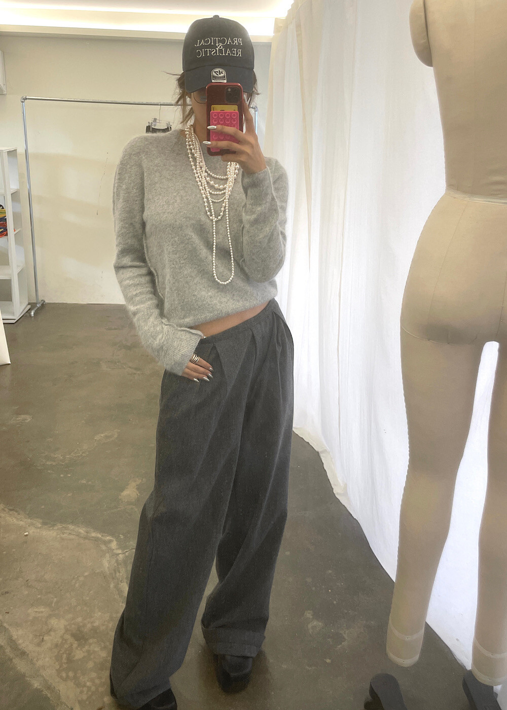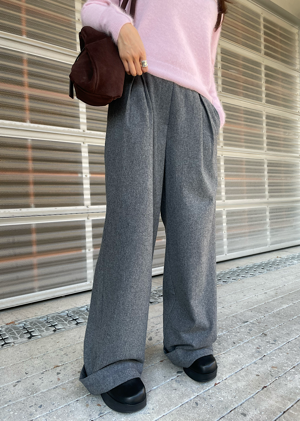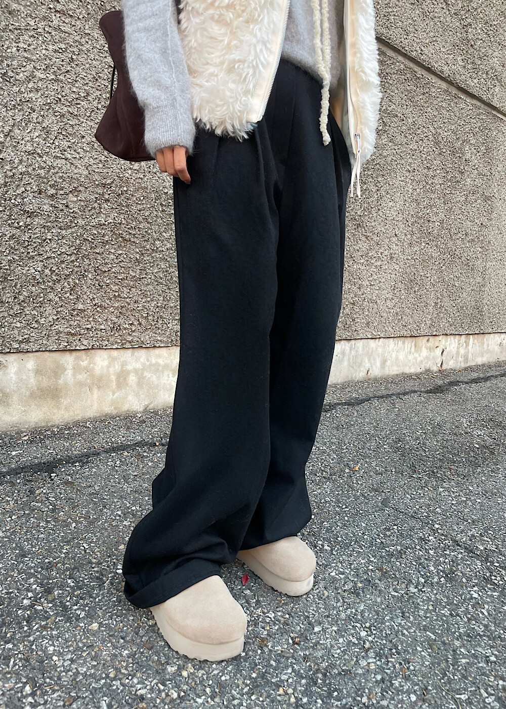 드뮤어 룩을 완성시켜줄 울 함량이 높은 슬랙스에요!
