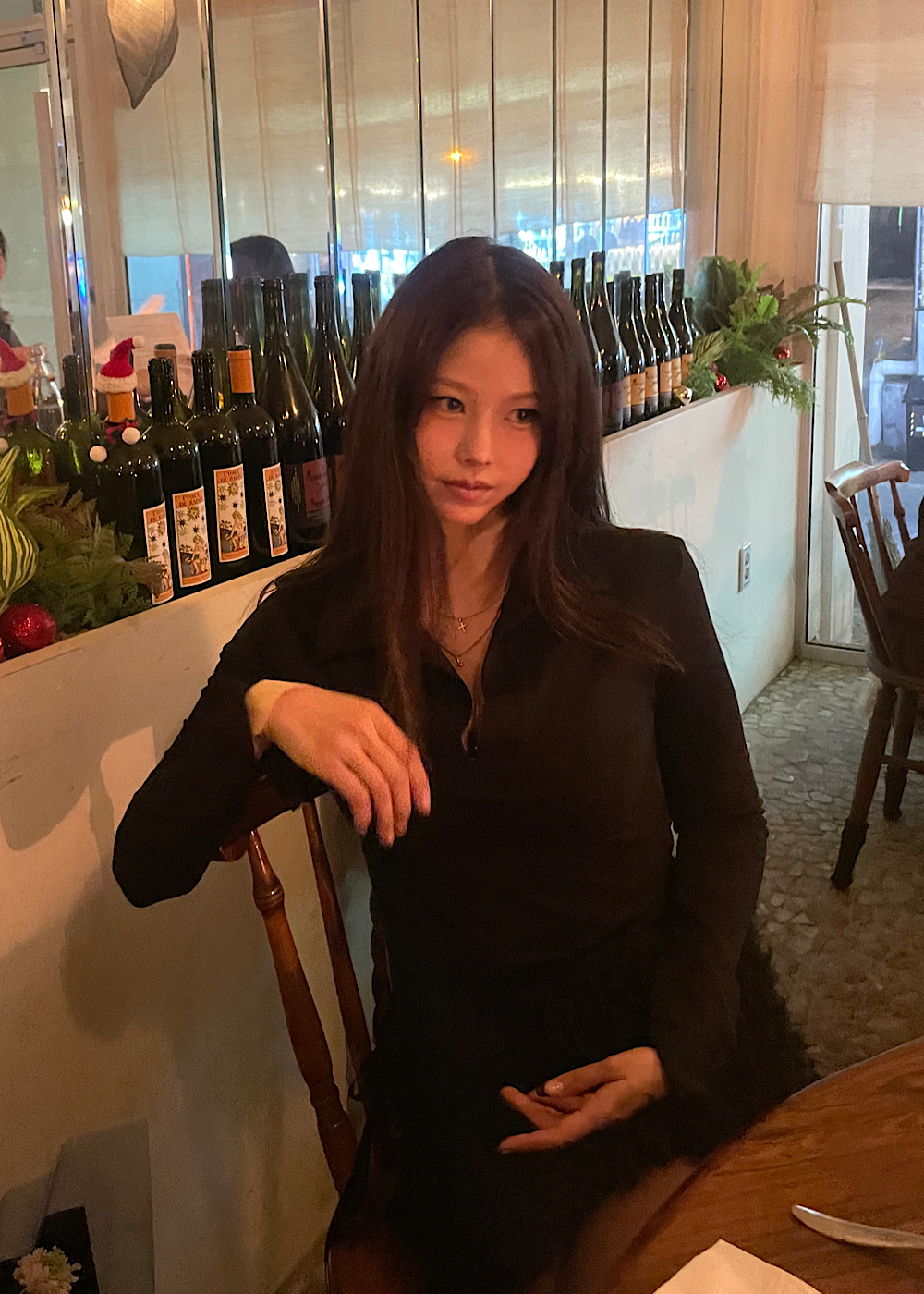 카라넥으로 포멀한 느낌도 있어서 다양하게 연출가능하세요!