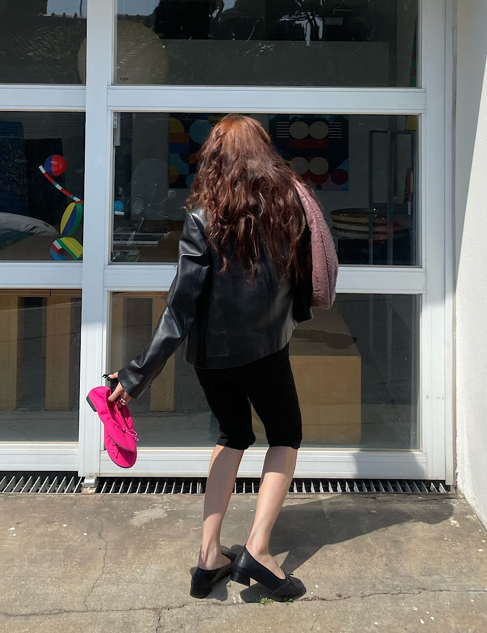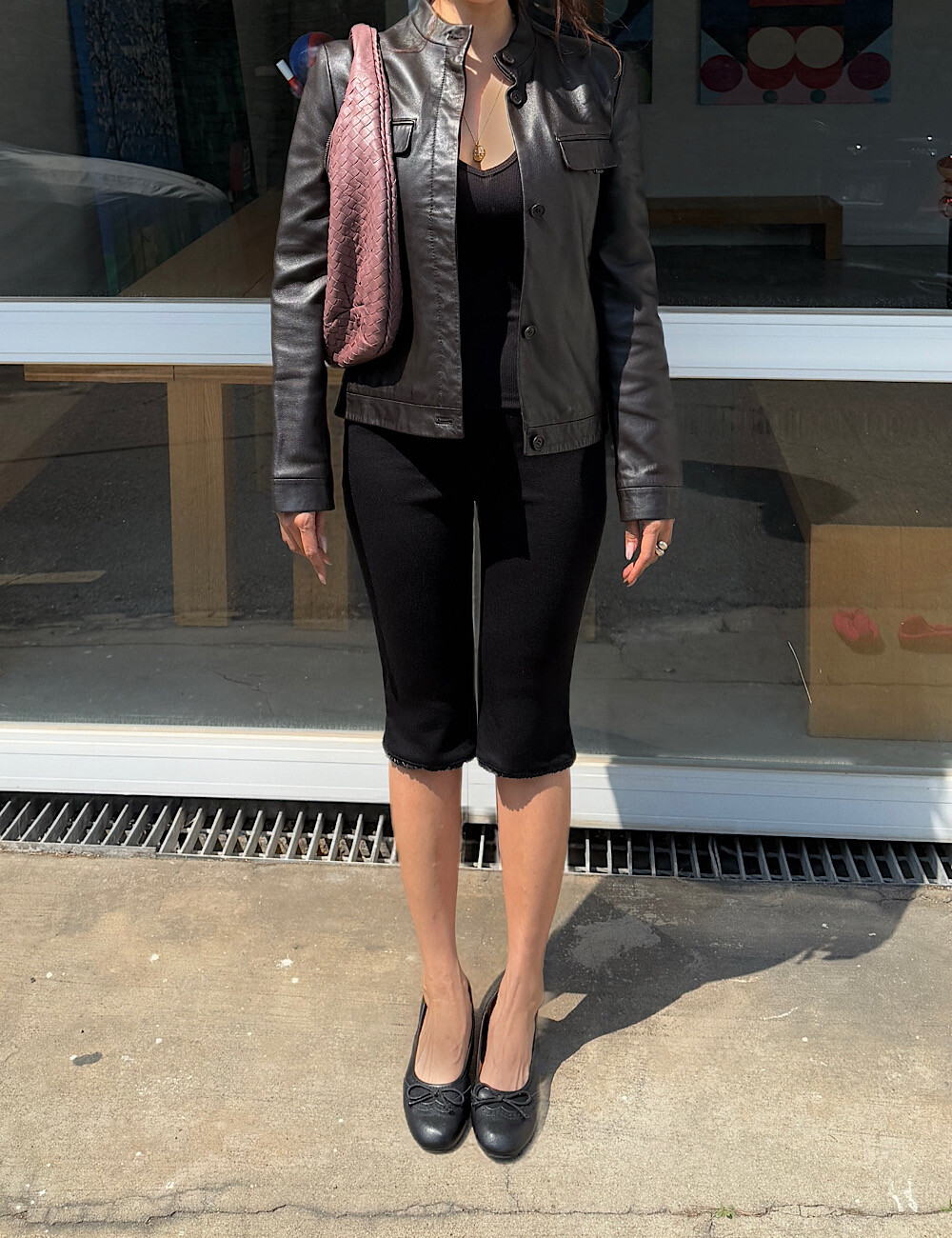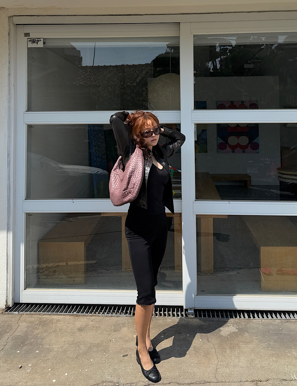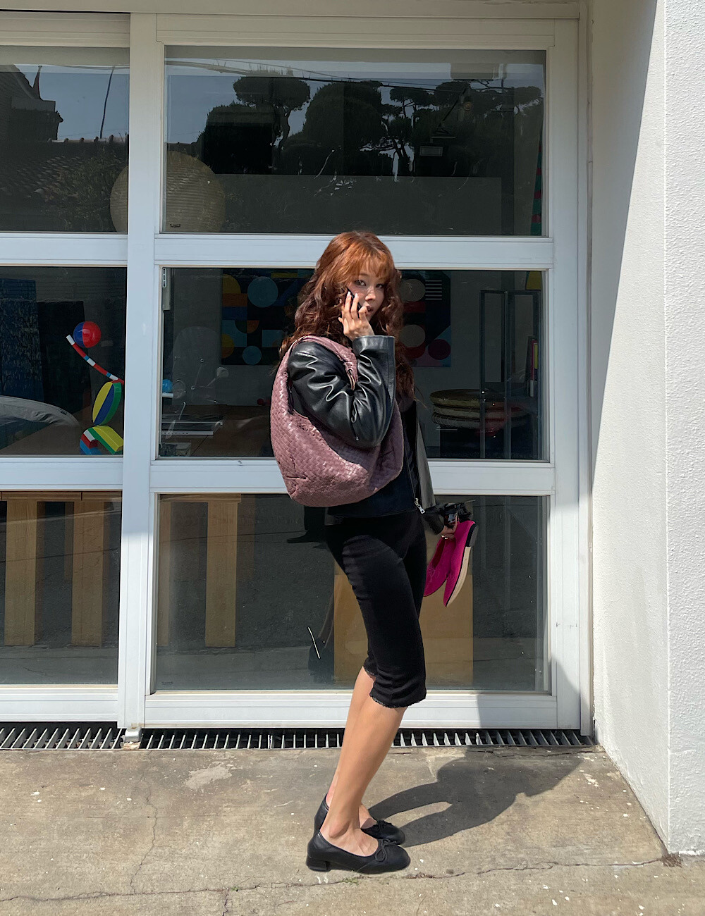 카프리 팬츠는 배 라인을 싹 잡아주는 매직 핏이에요. 허리부터 힙까지 탄탄하게 눌러주니까 실루엣이 정말 매끈해집니다. 특히 밑단의 섬세한 레이스 트리밍은 제가 가장 공들인 포인트!