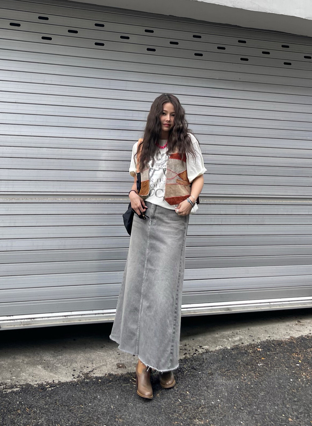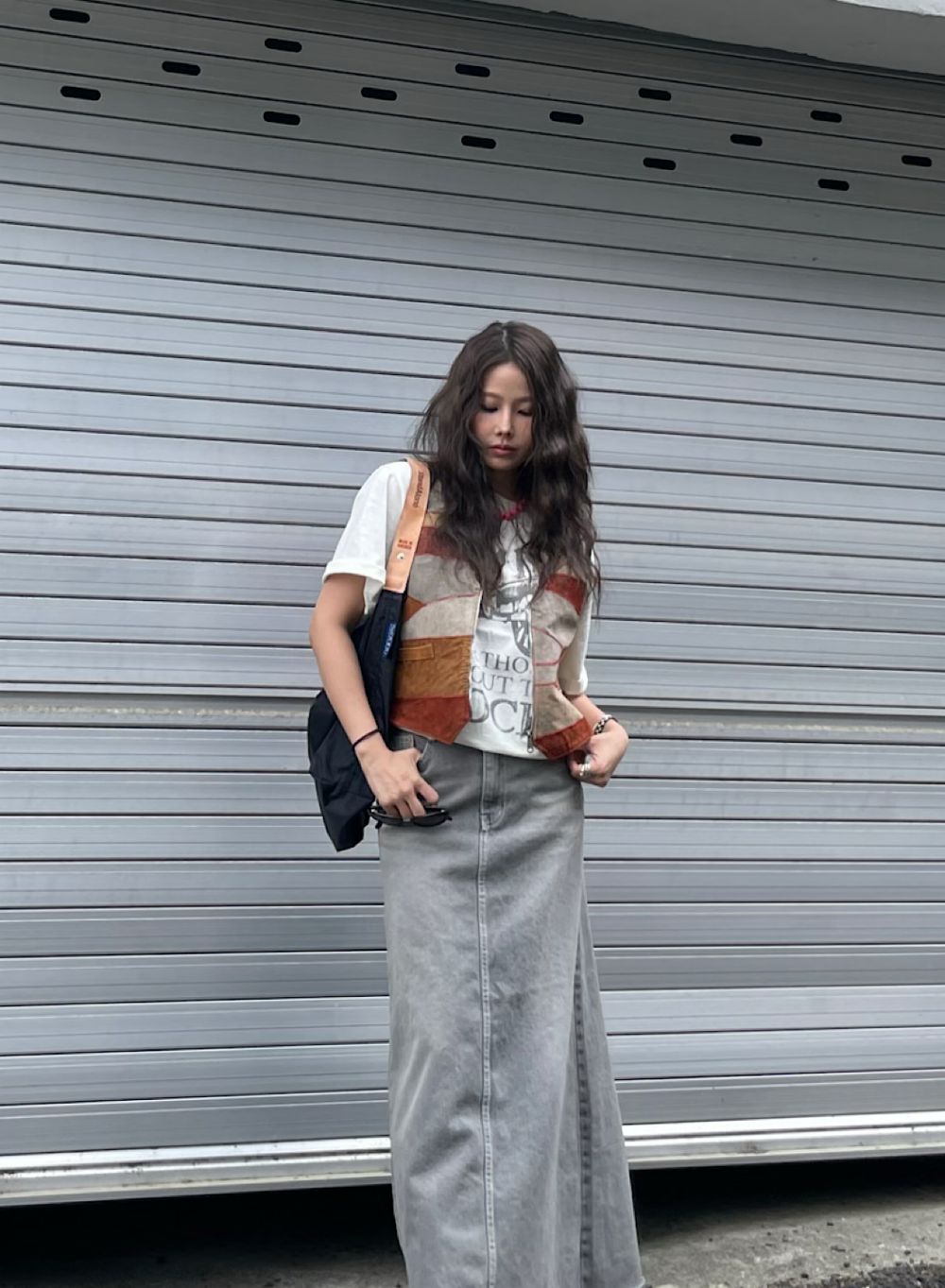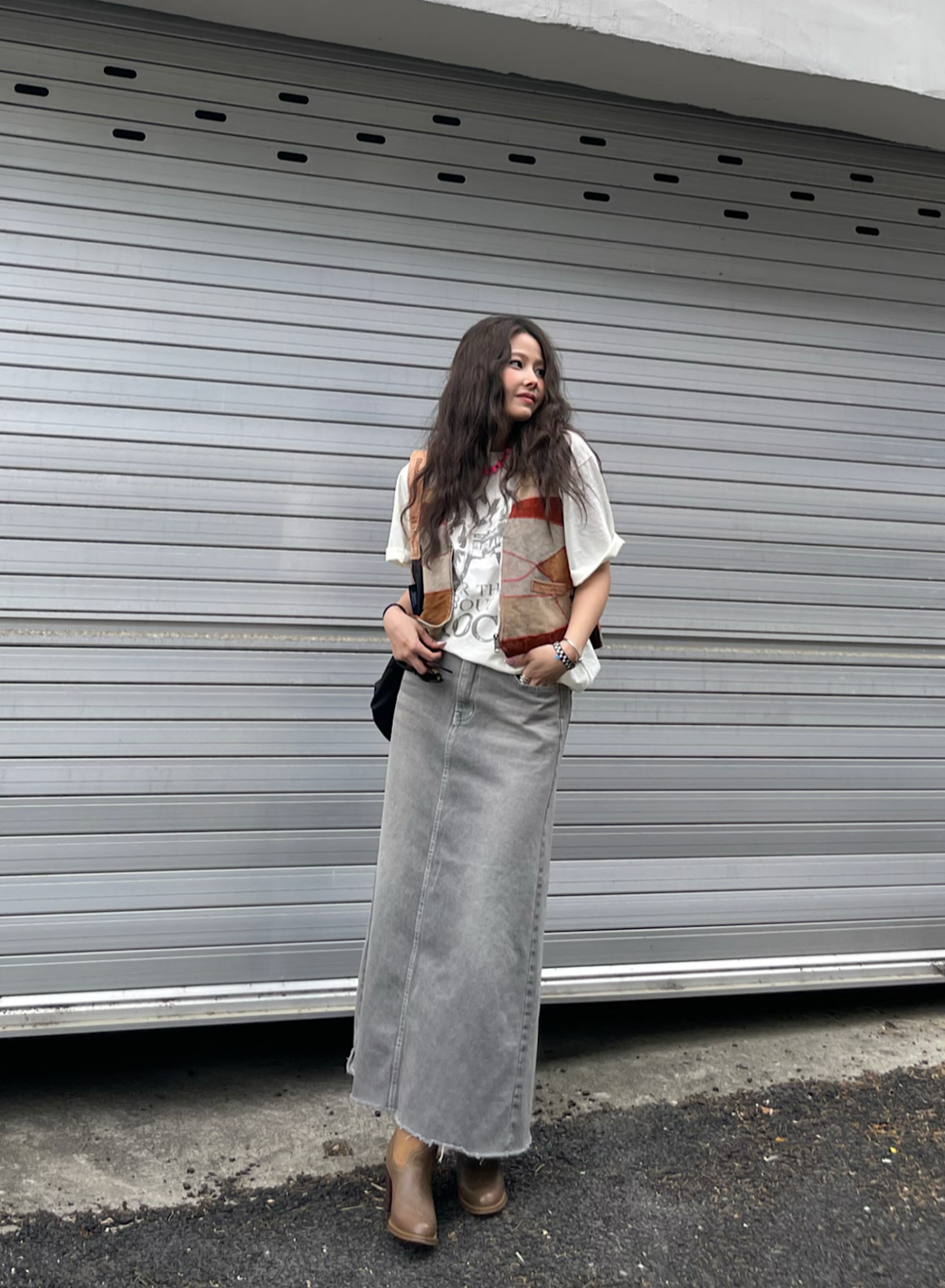 스웨이드소재에 사용감이 있는 제품으로 빈티지 반팔티위에