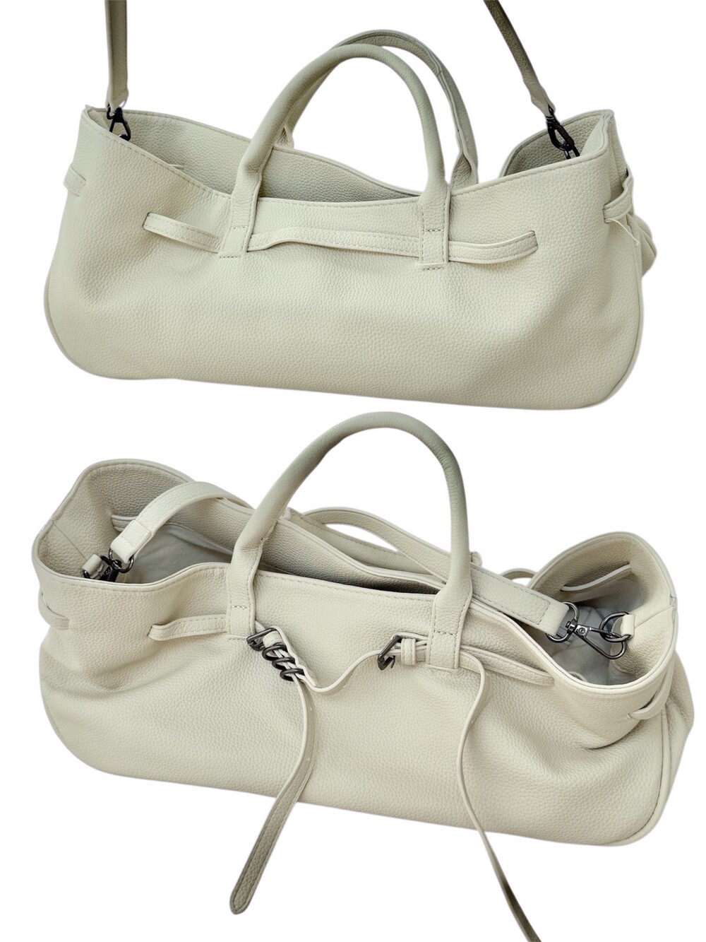 소프트한 질감의 PU 가죽 소재로 제작된 숄더백.